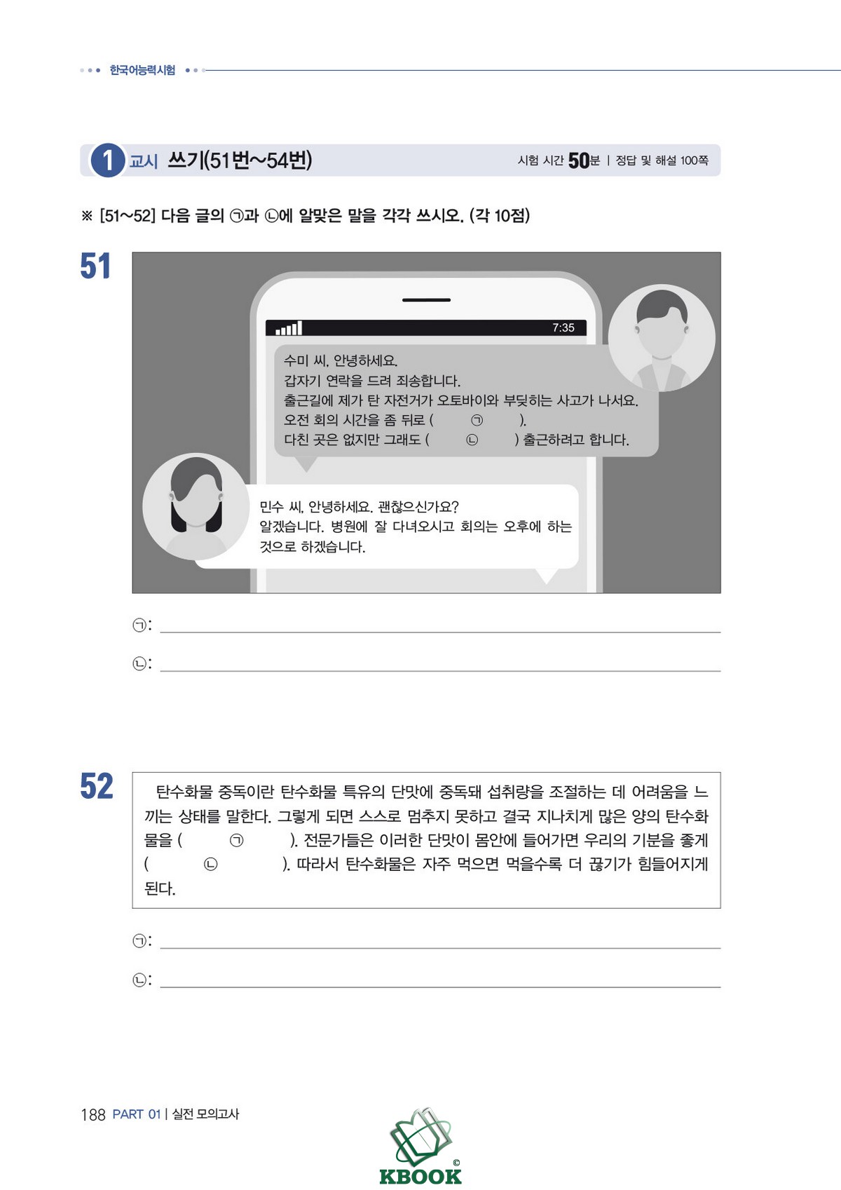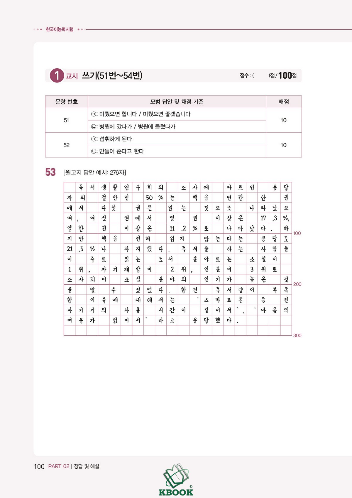 o Bao gồm 4 đề viết theo đề thi thật gần nhất và phần nói liên kết viết (말하기 평가)