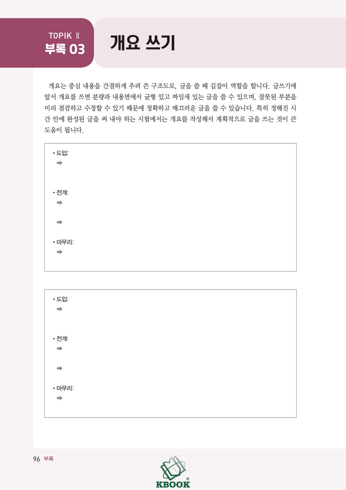 o 3 đề thi mô phỏng sát cấu trúc thật, kèm phần viết (개요 쓰기) và đáp án