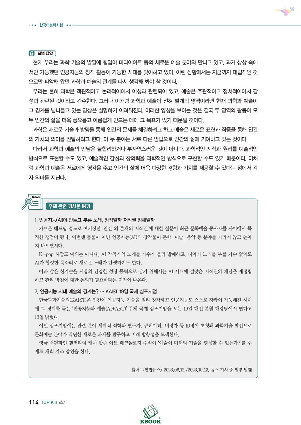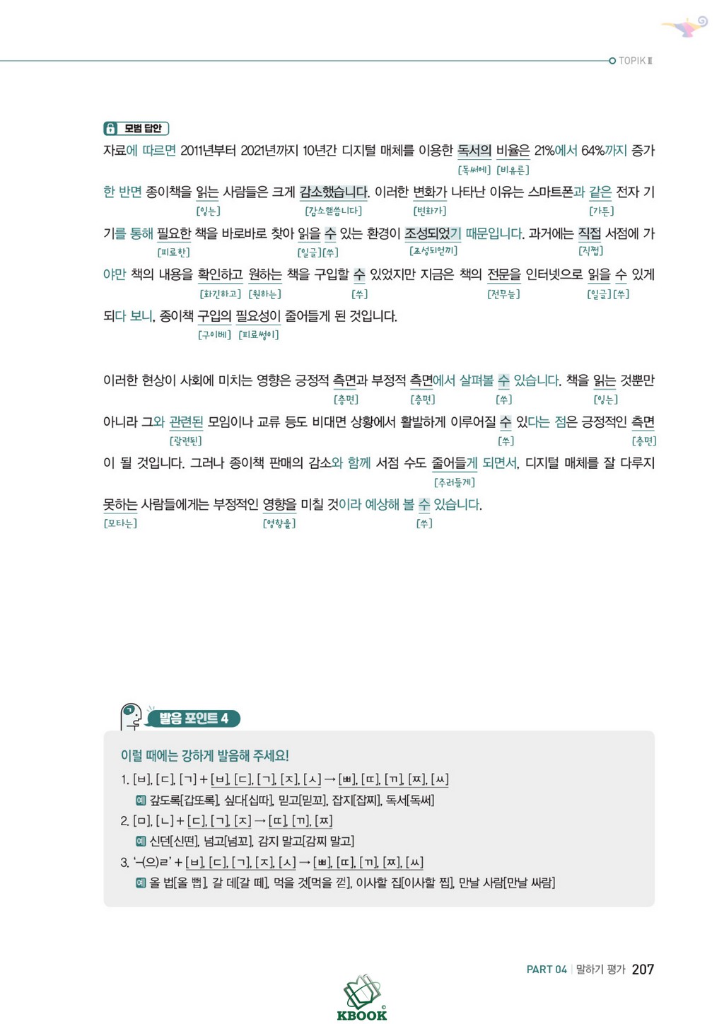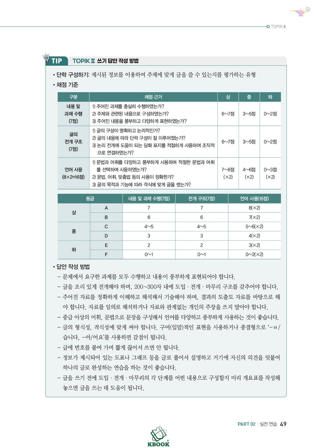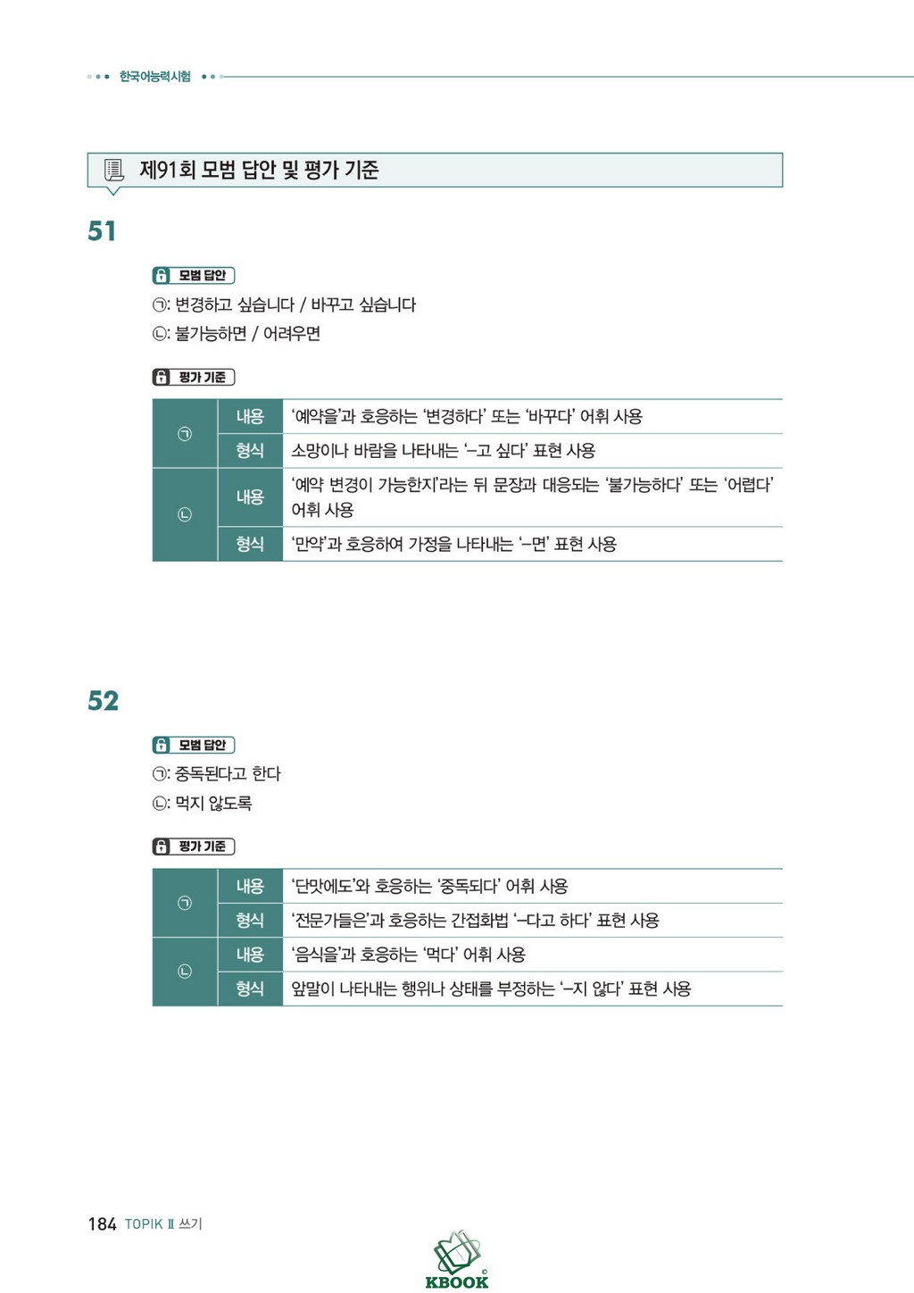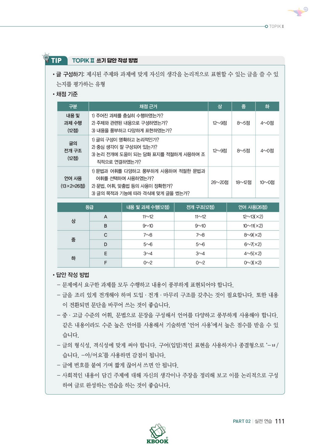 o Bao gồm 4 đề viết theo đề thi thật gần nhất và phần nói liên kết viết (말하기 평가)