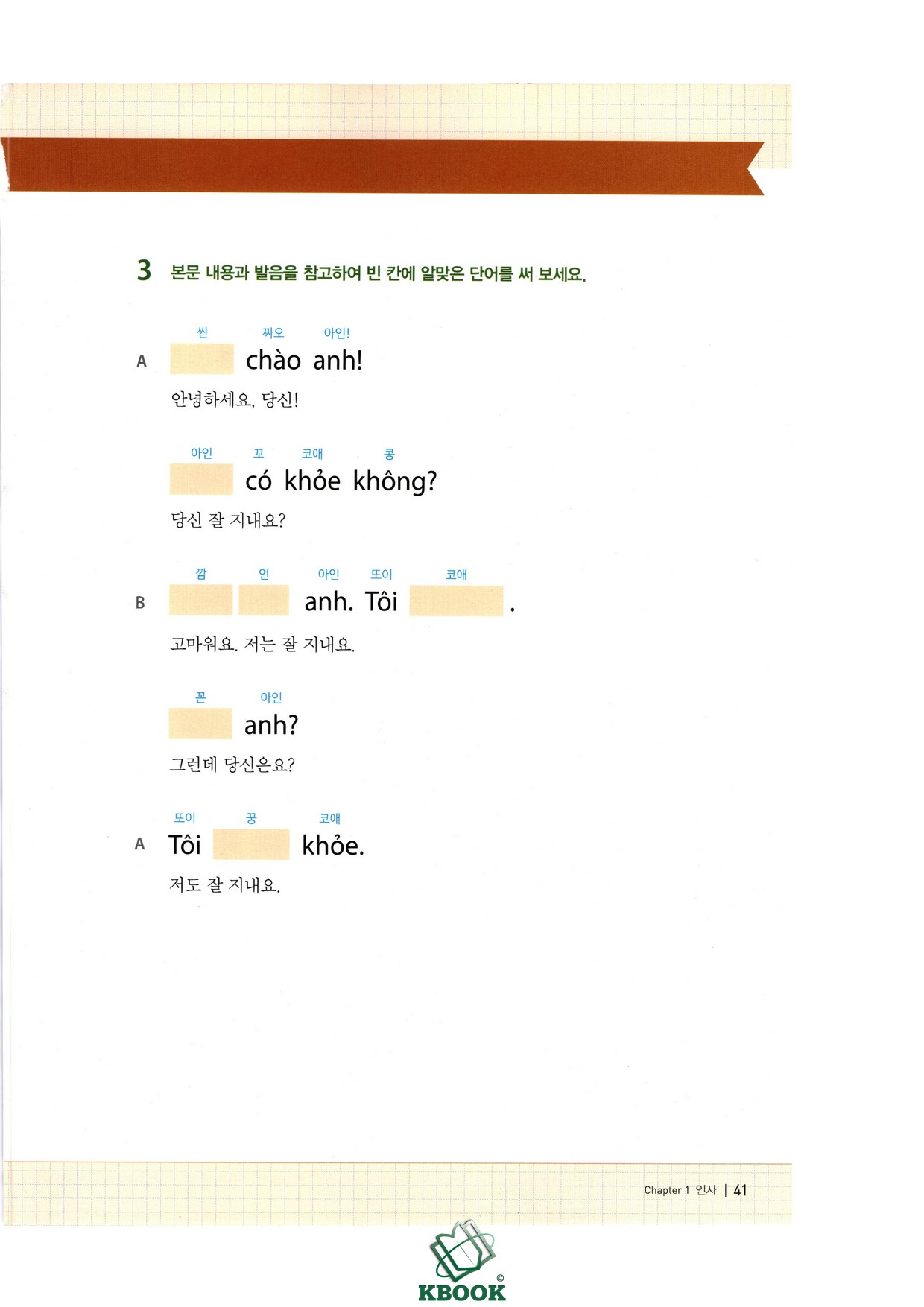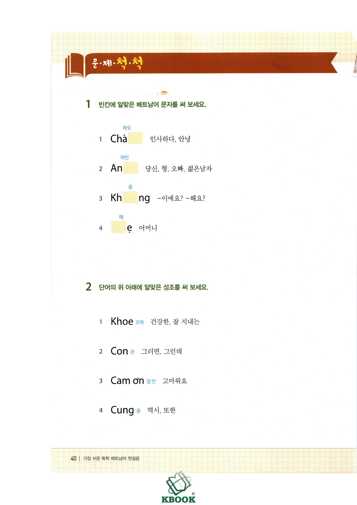 Cuối mỗi phần đều có bài tập ôn luyện như điền từ, viết câu, kiểm tra nghĩa từ vựng,... Bên cạnh đó, bạn còn có thể học thêm các mẫu hội thoại tự nhiên, các chủ đề mở rộng như ngày giờ, đại từ nhân xưng, chỉ thị,... để vốn từ thêm phong phú.