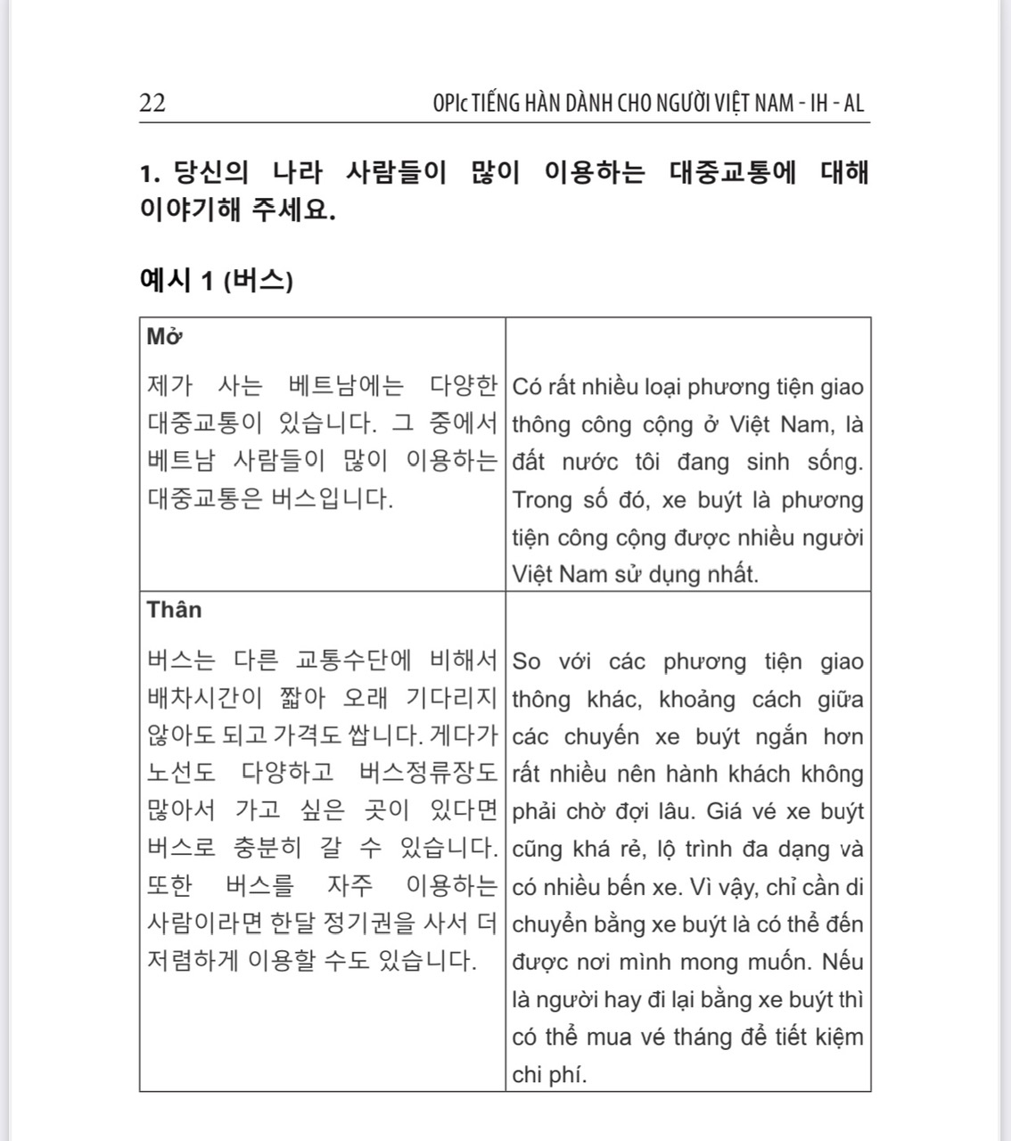 Trong 1 năm qua, tập 1: “OPIc tiếng Hàn dành cho người Việt Nam- IM,IH” đã được bạn đọc đón nhận vượt mức kỳ vọng của tác giả (Cô Đỗ Thúy Hằng) cũng như Kbook. Rất nhiều bạn học phản hồi khen ngợi nội dụng, cũng như sau khi đỗ IM-IH đã nhắn tin cho mình cảm ơn), Kbook xin trân trọng giới thiệu tập 2: