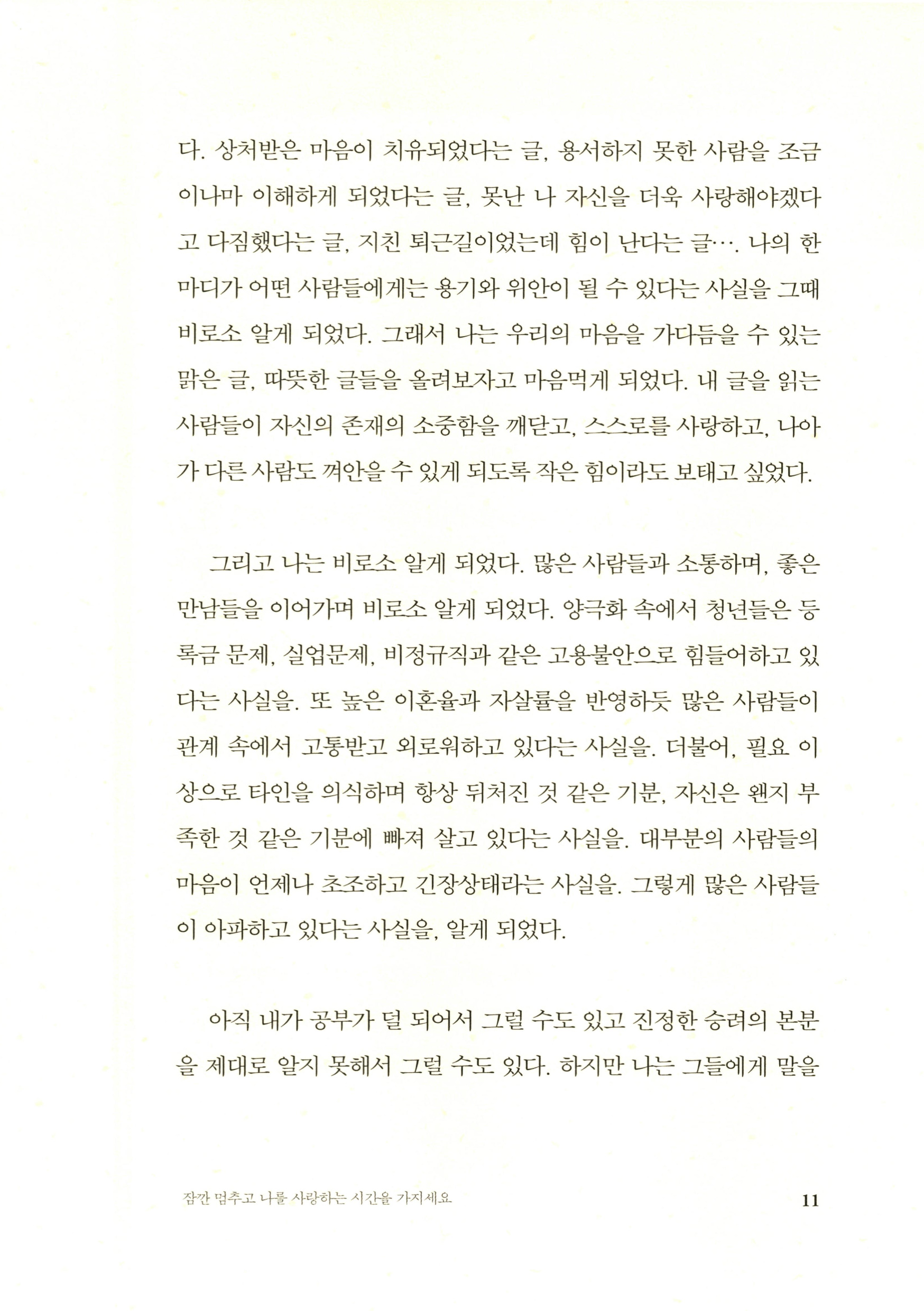 이 책은 우리에게 다정하게 말합니다. 완벽해야만 사랑받을 자격이 있는 것은 아니라는 것을. 해민 스님은 일상의 이야기와 깊이 있는 교훈을 통해 독자가 자신의 부족함과 결점을 있는 그대로 받아들이는 법을 알려 줍니다.