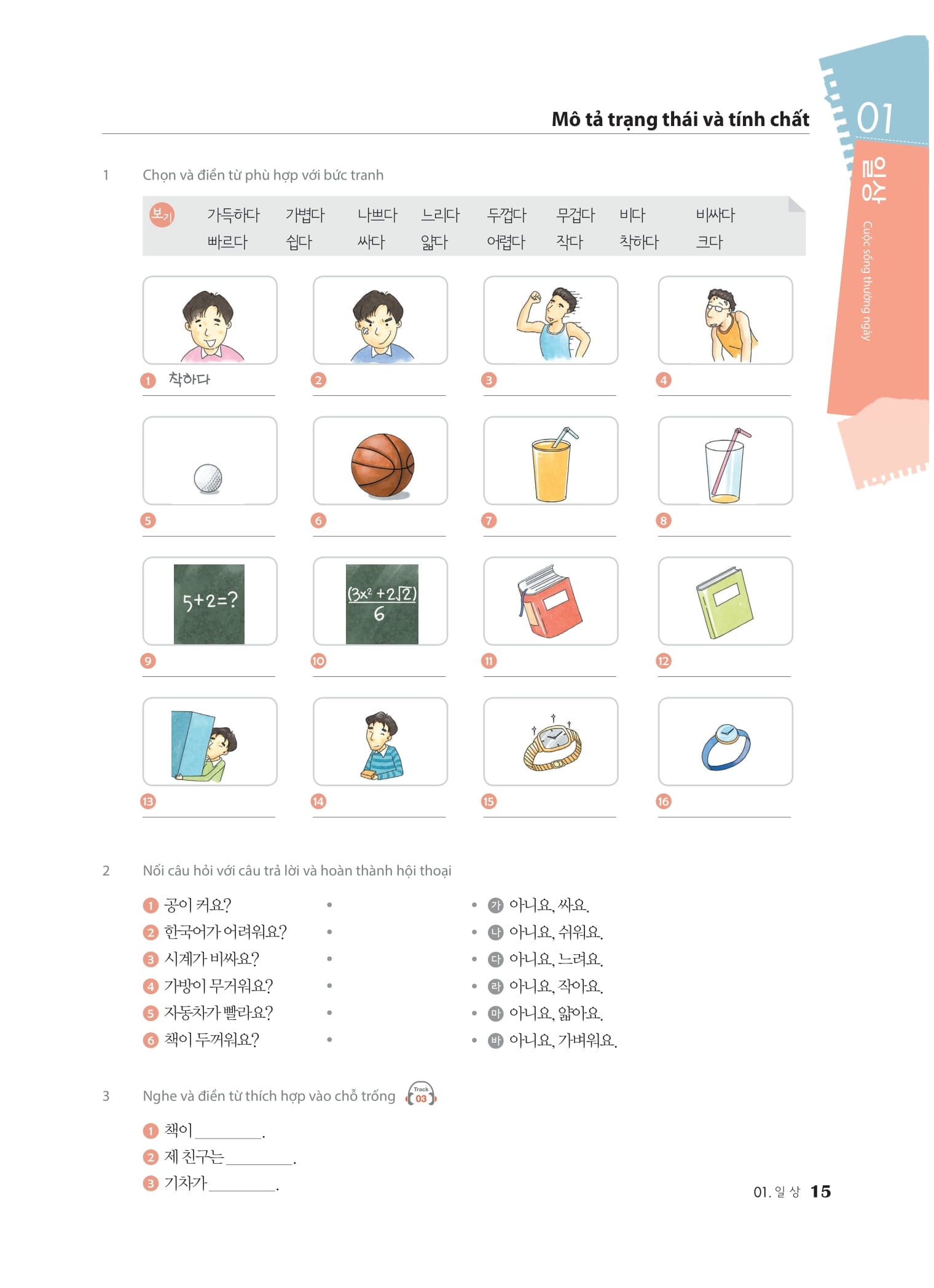 Khác với những cuốn Từ điển khô khan thông thường, cuốn sách bài tập Từ điển tiếng Hàn qua tranh mang đến cho bạn một chu trình học tập. Cụ thể, ở mỗi bài đều được chia thành các giai đoạn: nhận biết, kiểm tra và nâng cao, vận dụng.